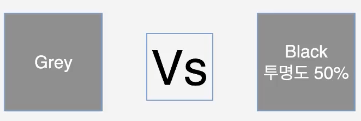 - 불필요한 투명도 사용 줄이기 : 왼쪽과 오른쪽 색상은 같은 색상을 보여주지만 연산에는 차이가 있습니다. 투명도 사용 시 부가적인 연산을 통해 적절한 컬러 값을 도출해야 하는 작업이 필요하여 추가적인 연산을 필요로 합니다.