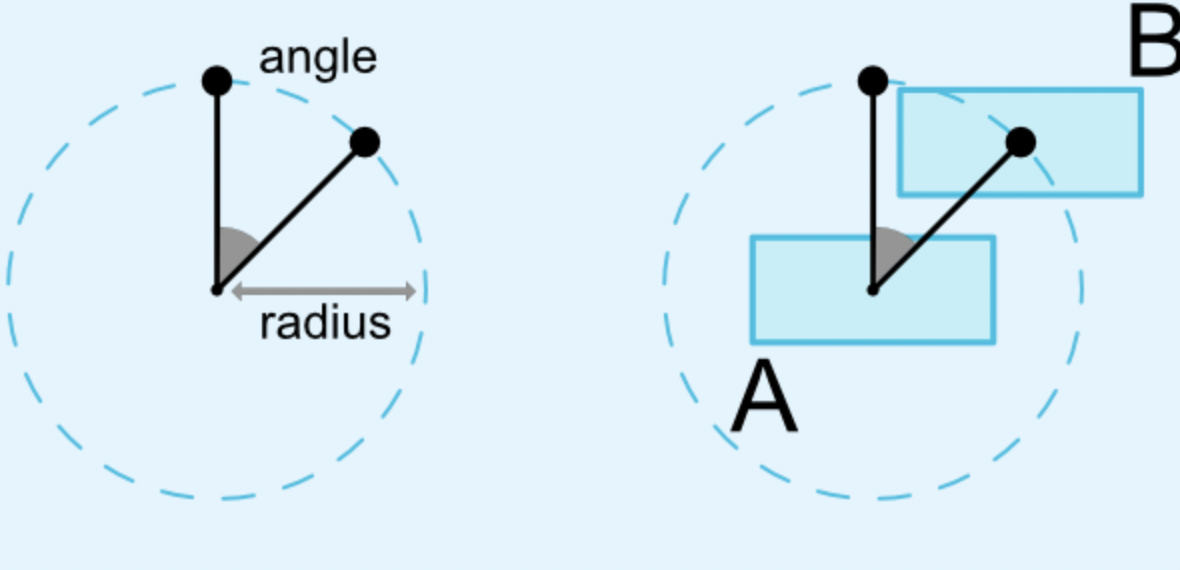 각도와 거리에서 다른 위젯 중심을 기준으로 위젯 중심을 제한할 수 있습니다. 이를 통해 위젯을 원에 배치할 수 있습니다.