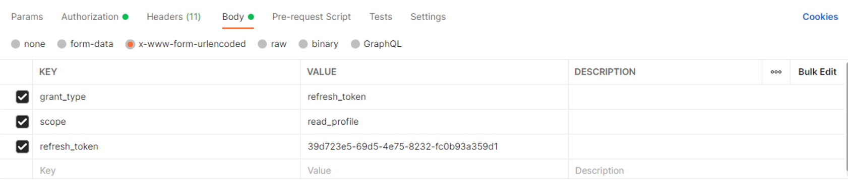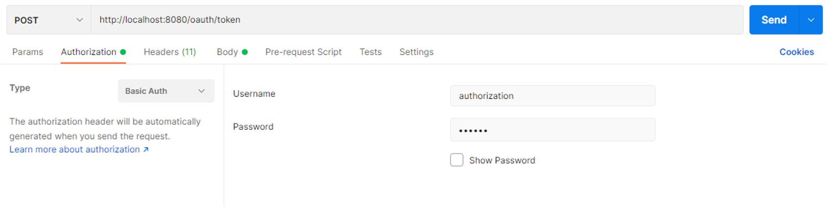 리다이렉트된 페이지에서 발급 받은 권한 부여 코드로 PostMan을 통해 권한 서버에 Access Token을 요청 받을 수 있습니다.