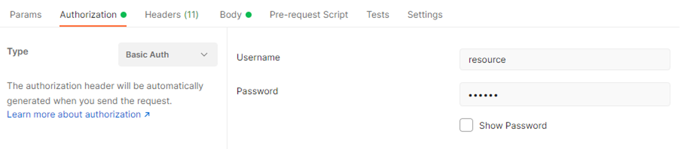 Resource Owner Password Credentials Grant 방식 1) 인증을 진행합니다. Username, Password를 통해서 자격 증명이 진행